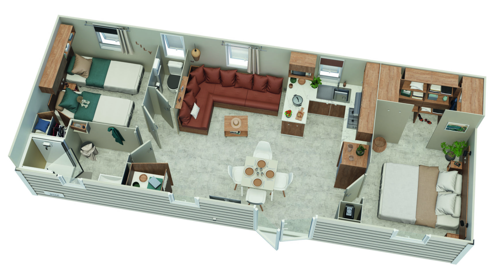 Mobil-home IRM Habitat Capucine – 2 chambres – 1 sdb – 1 dressing – 4/6 pers. – 36,4 m²
