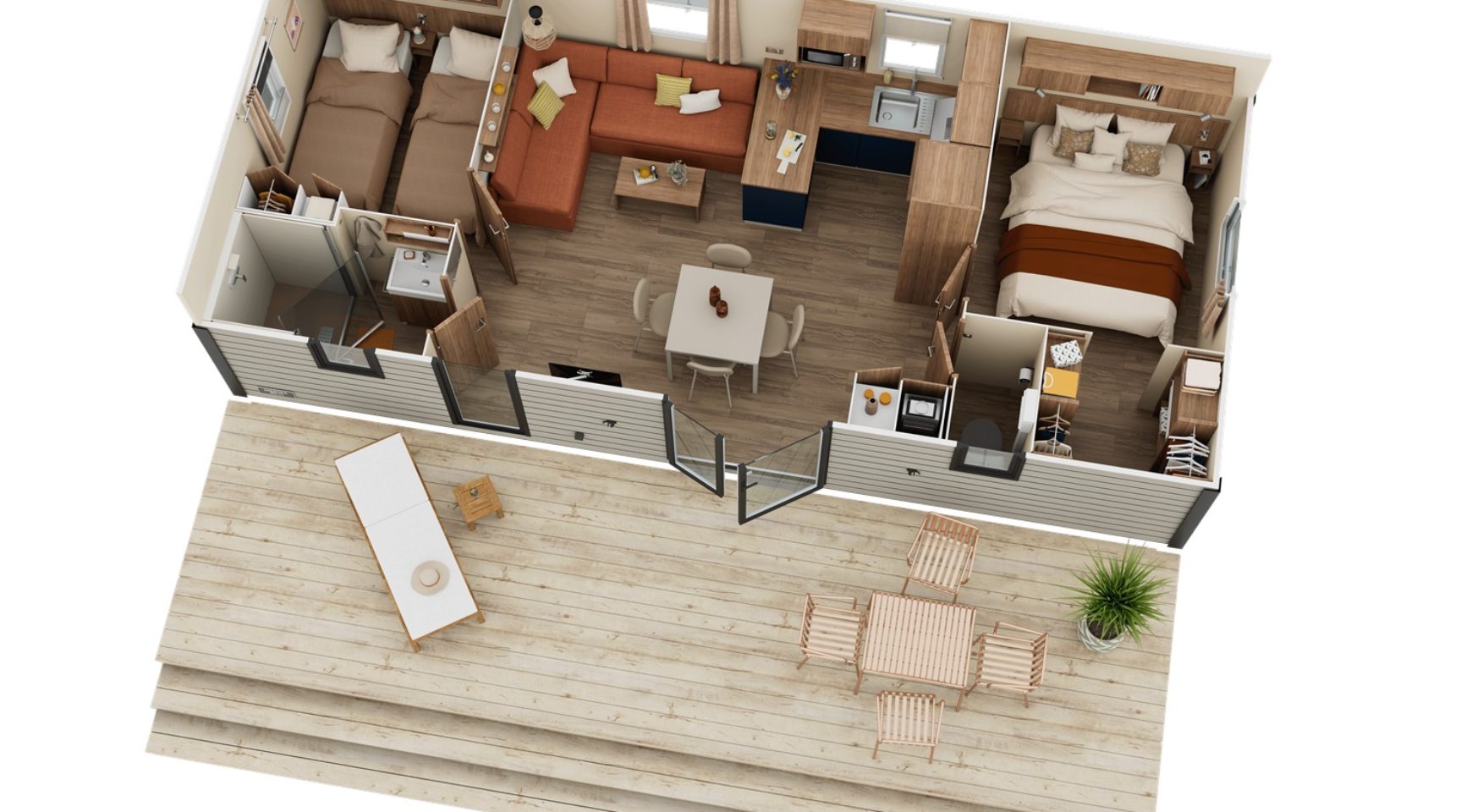 Un modèle 2 chambres compact, pour profiter sereinement du confort d’un intérieur pratique et bien pensé.