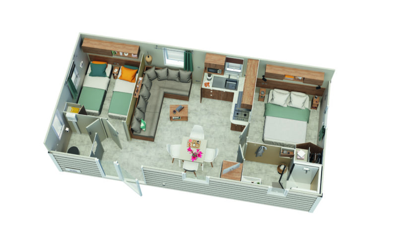 Vous allez pouvoir vous épanouir au même rythme au sein de ce modèle compact, en profiter dès l’arrivée des beaux jours et y accueillir petits-enfants ou amis pendant tout l’été, grâce à ses deux chambres et son salon grand confort.