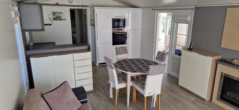 Un mobil-home lumineux et moderne, pensé pour un confort optimal, situé au cœur d’un camping en bord de mer, ouvert 11 mois/an.