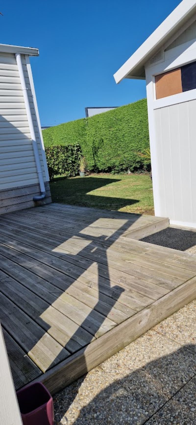 Terrasse couverte 9 x 3m + terrasse non couverte incluse et cabanon inclus